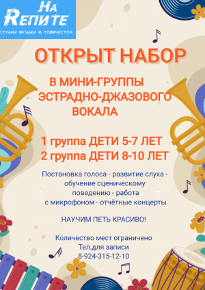 Детская студия Mon Media объявляет набор детей в вокальные группы на сентябрь 2023.