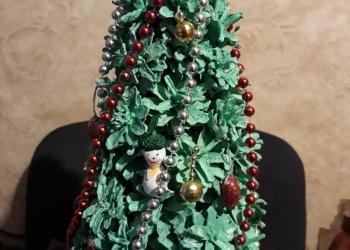 Елочка, с украшениями, не полая. Ручная работа, сделана и шишек елово-пихтовых, сосновых пород, натуральные.