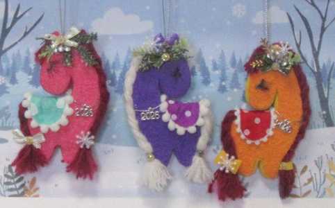 Новогодняя игрушка лошадка. Выполнена из махрового фоамирана , легкая и твердая. Объемная , двухсторонняя.