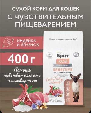 Корм для кошек сухой, для взрослых кошек BRIT CARE "Cat Sensitive Healthy Digestion", чувствительное пищеварение с индейкой...